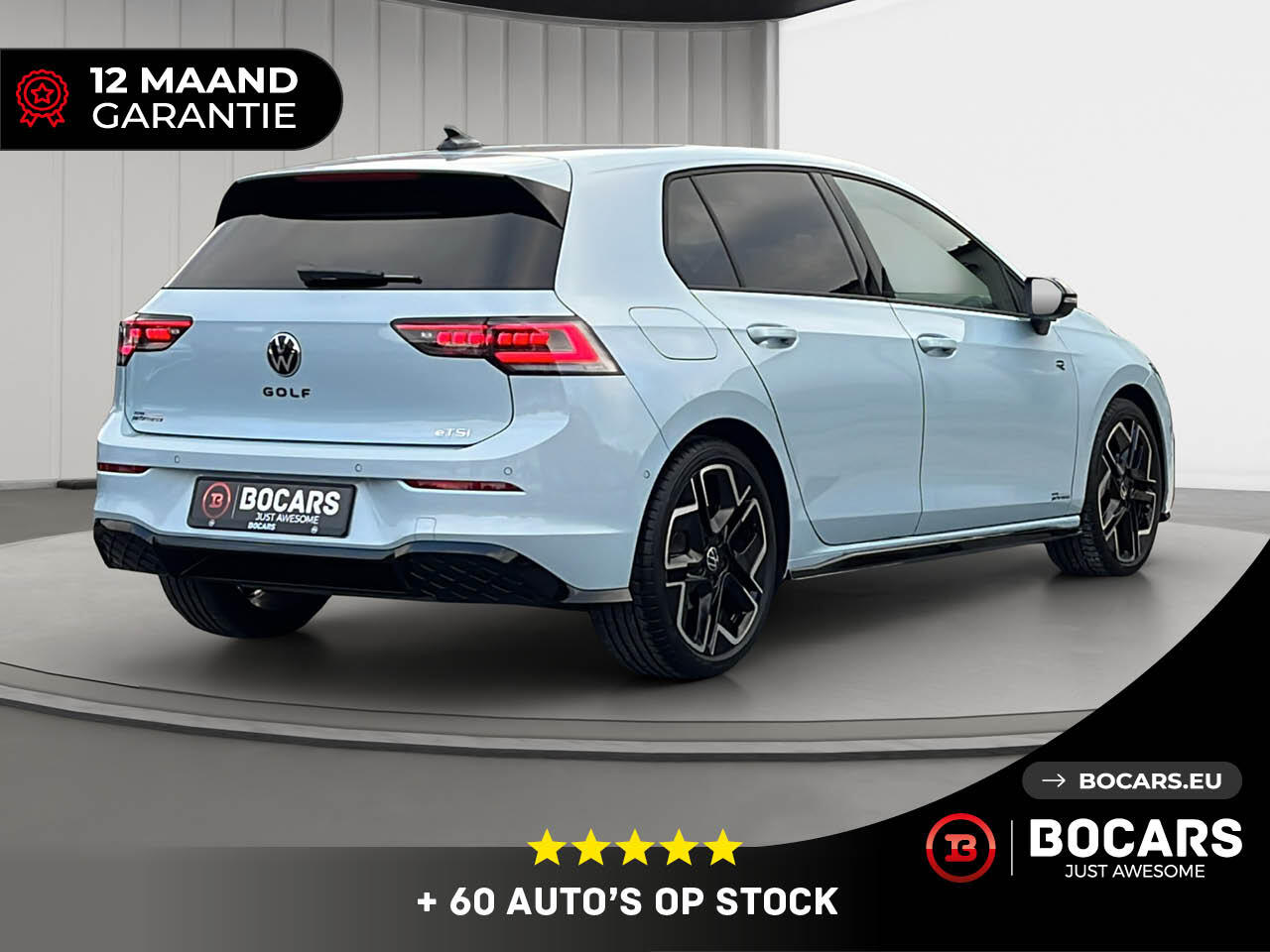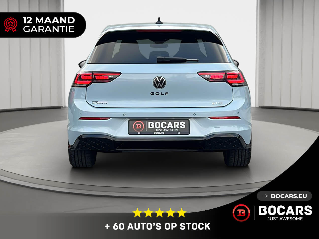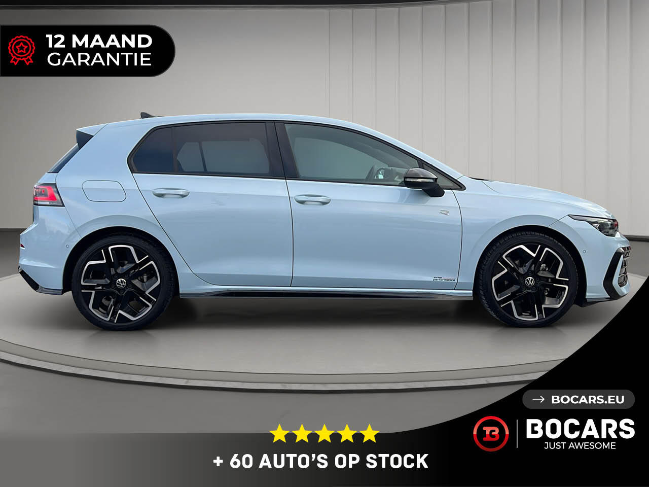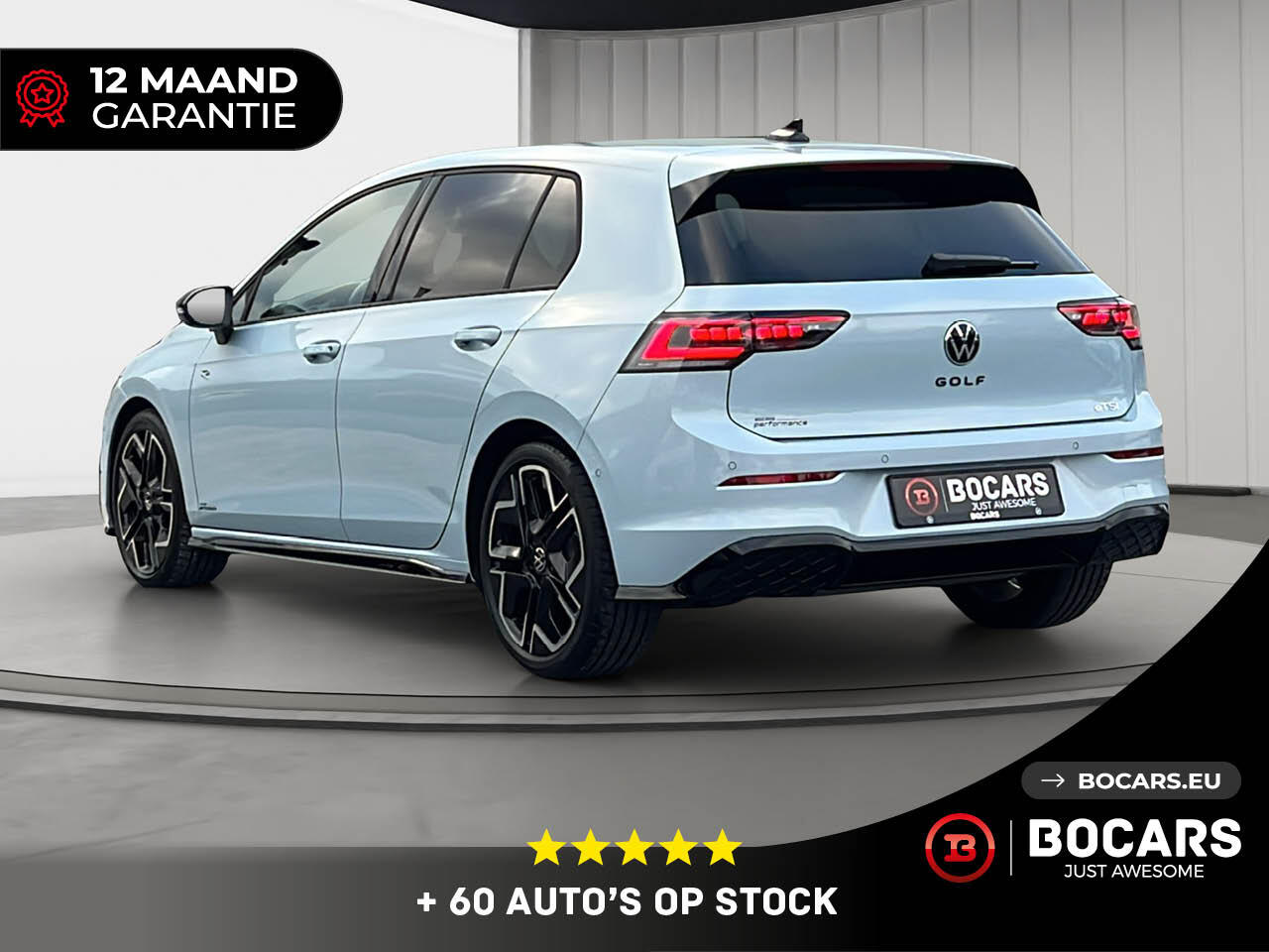 DE TOEKOMST IS HIER. Maak kennis met de Volkswagen Golf 8.5. De iconische hatchback is vernieuwd, verfijnd en sportiever dan ooit. Bij BOCARS presenteren we met trots dit exemplaar in de unieke kleur Crystal Ice Blue, afgewerkt met het stoere Black Pack.
