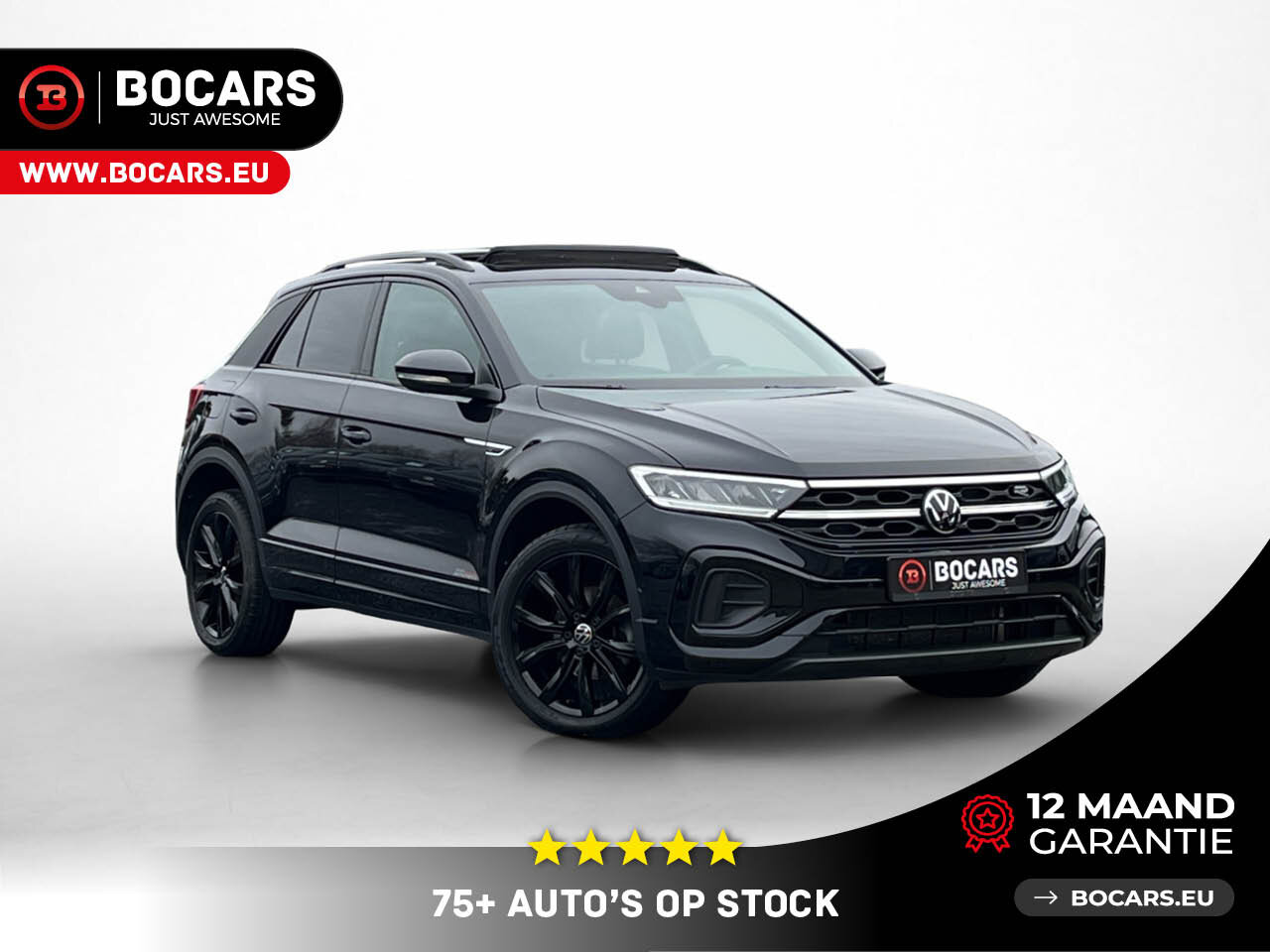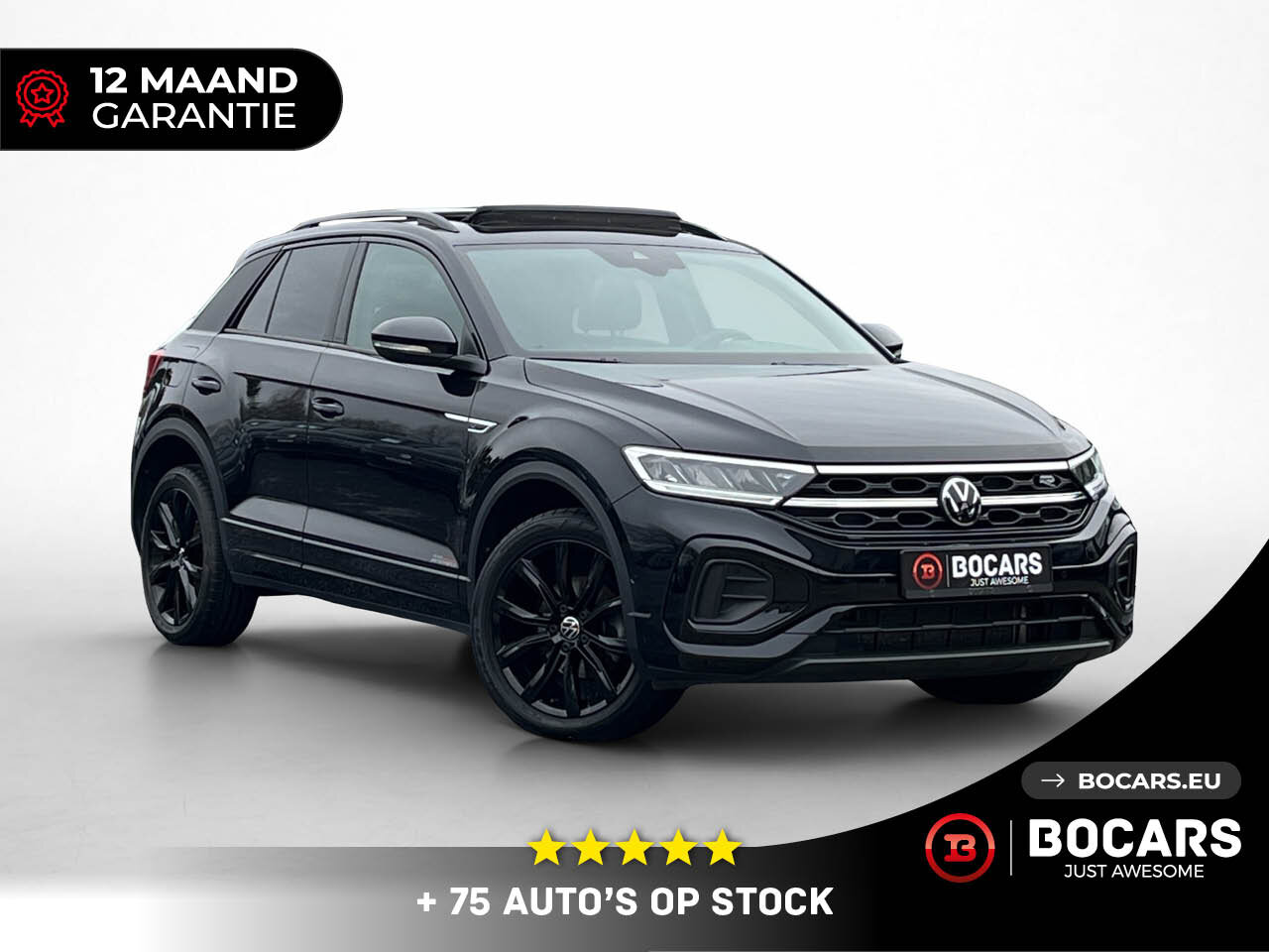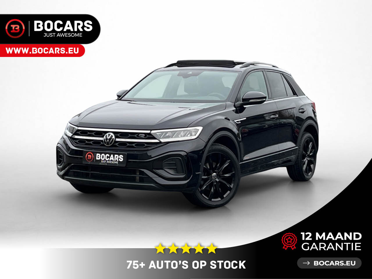 Bij BOCARS maken we een einde aan je zoektocht. Hier staat hij: De VW T-Roc R-Line 1.5 TSI (150pk) in de felbegeerde Full Black uitvoering mét Panoramisch Schuifdak.
