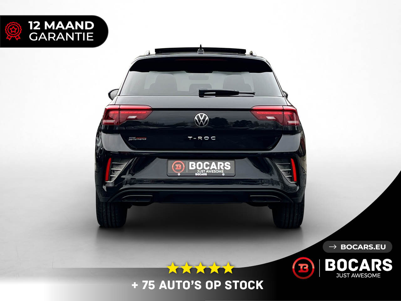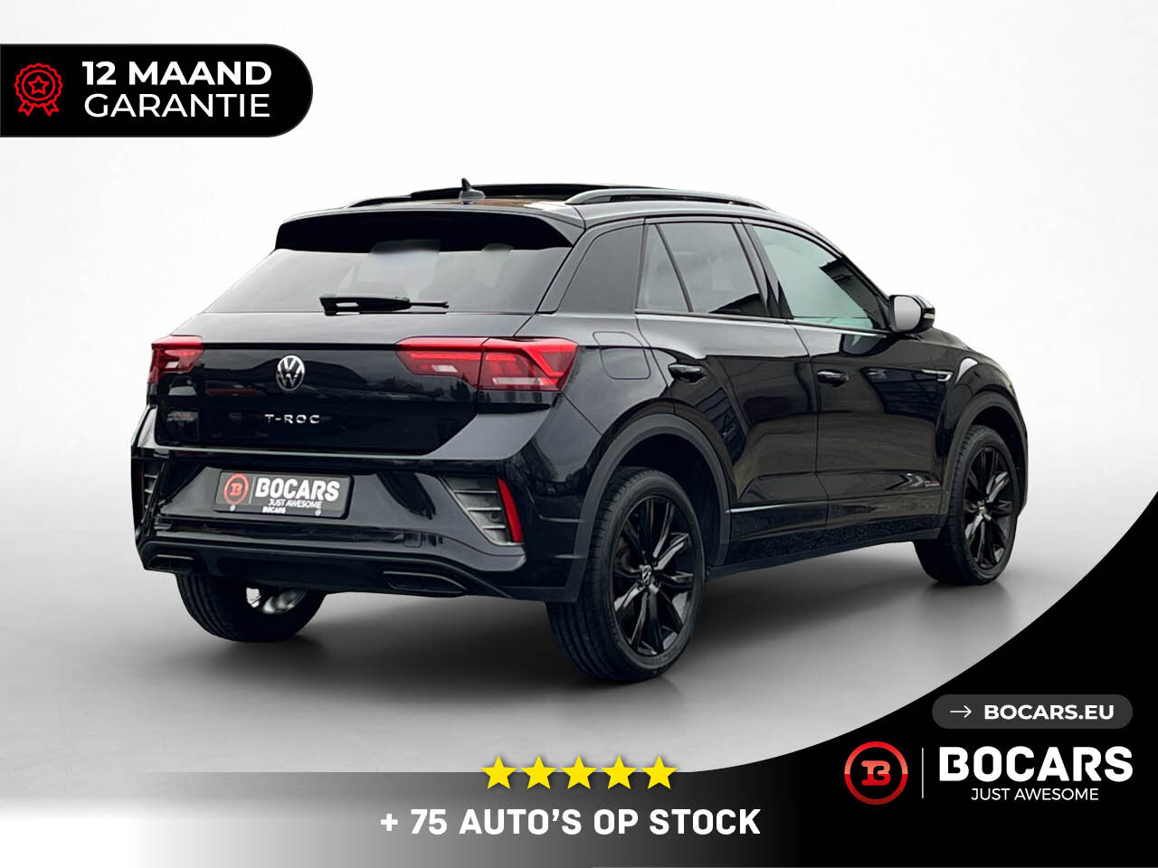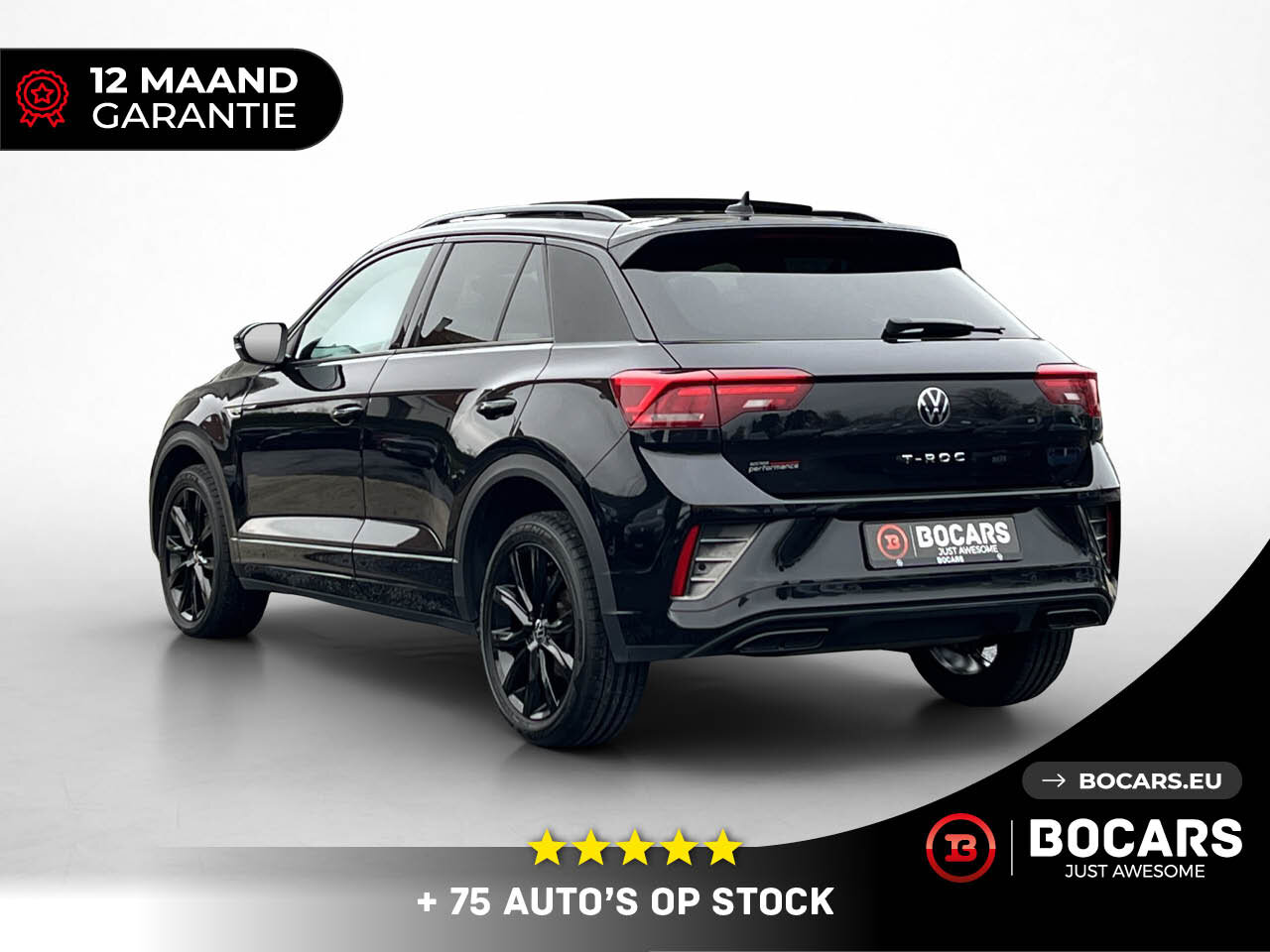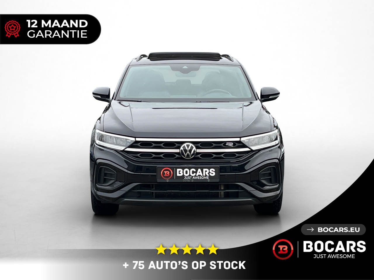 Bij BOCARS maken we een einde aan je zoektocht. Hier staat hij: De VW T-Roc R-Line 1.5 TSI (150pk) in de felbegeerde Full Black uitvoering mét Panoramisch Schuifdak.